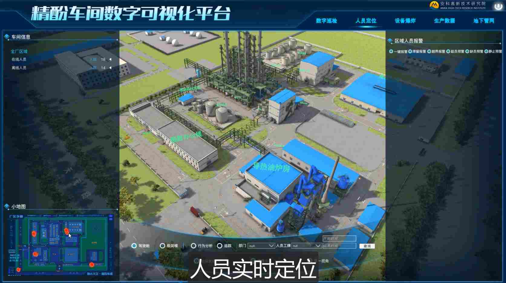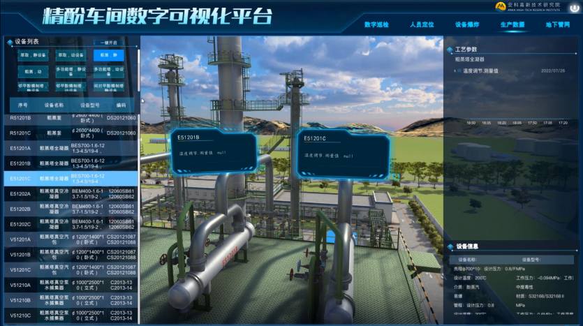 1. 数字孪生工厂:通过三维建模展示厂区和车间结构,融合现有数据资源,辅助全面掌控厂区运行。