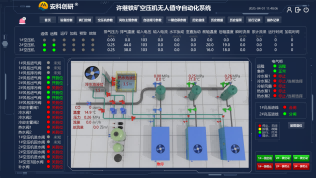 通过对空压机及附属设备运行工况参数的采集、监测、分析、数据查询,实现对压风系统异常项预报警,根据矿井实际需风量智能调配开机台次,实现空压机智能化监控,保障设备安全、经济、可靠运行。